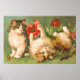 A very delightful and charming vintage painting of kittens playing with a red flower. The artist is unknown.