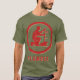 My 11 yo wore adult XL (5’7” 165#). The 8yo is small framed. She wore adult small and tied it in the back. Grandma wore adult large with long sleeve shirt underneath. Tall girl adult medium. Dark haired male adult large. Good quality dark Heather gray, Gildan brand shirt. -it was next up from basic choice and cost about $20 per shirt. Not too thick or thin. Washed and dried well, no major shrinkage. Not see-through. Can wear a bra under it fine. Screen print is just as shown and well done, front and back.