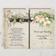 Vintage plumeria or frangipani and ivy custom beige folded wedding ceremony and party program, featuring beautiful white and orange plumerias with green leaves and ivy on beige grunge background. This modern approach to a vintage design is a completely customizable template and is part of a wedding set or collection perfect for a Hawaiian wedding. Beige, taupe, white, green, orange, black. You will have to fold it in the center. Choose only this type of paper-value as it folds well.