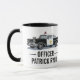This coffee mug for police officers features a vintage police car in black and white with an officer's name to personalize in black typography on white. Designed by world renowned artist ©Tim Coffey.