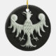 Lightweight, smooth, pure white ornament with nice sheen. Perfect size to be seen from across the room ... and to attract closer inspection! Price was great for ordering enough for the whole family! Clear, bold black design just as requested. Matches the order exactly. Just so nice!