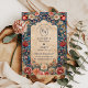 A richly detailed vintage wedding design framed with vibrant pomegranates, blooming flowers, and lush foliage in deep jewel tones. The ornate botanical border creates an opulent, old-world feel perfect for romantic, garden, or Mediterranean-inspired celebrations.