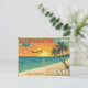 Illustrated postcard "Saint-Martin SXM 97150" in a retro travel style poster, with plane approaching, turquoise beach, palm tree and sunset. A unique souvenir of the Caribbean to send, collect or offer. Perfect for travelers, aviation enthusiasts and Saint-Martin lovers. High quality printing, premium paper.