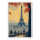 A vintage poster from the 1920s and later years from Paris in autumn, where you can see the Eiffel Tower from the surrounding heights.