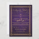 This beautifully deep aubergine purple 5"x7" wedding save the date announcement, with creamy gold text has a vintage, old fashioned feel with old-timey letter design, including elaborate script elements, a decorative banner, stars and a swirly ampersand. The fancy invitation is inspired by both vintage design and stylish posters. The text reads: "You're Invited to the wedding reception of [customizable name] & [customizable name] [customizable date] [customizable time]. Please Join Us for an Unforgettable Celebration". Further personalize the invitation with the reception information and address, in the box with dotted border.