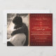 This beautifully deep, sumptuous red 5"x7" wedding save the date announcement can be customized with your own engagement photo. With creamy gold text, it has a vintage, old hollywood feel with old-fashioned typography design, including elaborate script elements, a decorative banner, stars and a swirly ampersand. The fancy invitation is inspired by both vintage design and stylish posters. The text reads: "You're Invited to the wedding reception of [customizable name] & [customizable name] [customizable date] [customizable time]. Please Join Us for an Unforgettable Celebration". Further personalize the invitation with the reception information and address, in the box with dotted border.