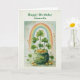 Birthday card with a seasonal St. Patrick's Day image. Faded grunge style paper. A green pot of gold with coins