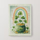 spilling out onto the ground. A colorful rainbow above and shamrocks growing all around.