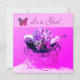 VINTAGE PRAM,FLOWERS,BUTTERFLIES PINK BABY SHOWER INVITATION