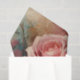 This vintage-inspired design features a stunning arrangement of Pretty mixed pink peach and dusky pink roses and delicate green botanical elements, set against a backdrop of faded text and antique textures. The soft, romantic color palette adds a timeless charm, making it a perfect choice for anyone who appreciates classic floral artistry.