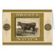Vintage illustration product label advertisement art featuring Dwight's brand super bicarbonated soda. Text reads; first, cheapest, best, John Dwight & Company, New York. Antique advertising featuring a cow standing in a farm field.