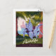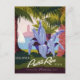 This design has been created using a 1936 vintage style WPA Travel poster. The design features a nature scene of a park with palm trees near water. There is a sail boat in the water and a building in the distance. The focal point of the poster is the large purple flower.