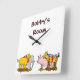 A custom wall clock with vintage art of a toy dog, horse, pig and elephant on wheels, restored from a child's storybook. Click Customize It to change fonts, background colors and more.