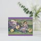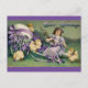 This lovely vintage style postcard features a lovely girl playing with chicks. A beautiful purple color is the highlight of the design.