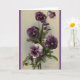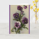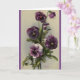 A vintage illustration of a bunch of multi-hued purple pansies with variations from light lavender to a deep, rich purple. This card is blank inside for your own message.