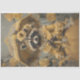 The image portrays a charming raccoon lady, elegantly attired in a yellow gown that radiates like the petals of a marigold. Her dress is adorned with ruffles and lace, and she holds a parasol that blooms with roses, matching the floral backdrop that surrounds her. Dame Marigold of Raccoonshire is a figure of grace and poise, her attire a perfect blend of nature’s beauty and the sophistication of high society. This digital artwork by RHDesigns, suitable for decoupage on furniture or as a canvas piece, brings a whimsical touch to any home decor