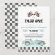 Plain white envelopes are included with paper invitations and will come to fit the invitation size you select. If you don’t need the envelopes, you may choose to not receive them by selecting the dropdown below "Envelopes" and choosing "None." If you’d like to have a design on your envelopes, you can browse all of these available envelopes to find the design that complements your Fast One Racing Car Vintage First Birthday Invitation.