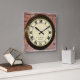 vintage railway station look clock. This clock is based on the wooden and ceramic clocks found all over the Uk and United States of America in the late 1800s and early 1900s. Customizable with your own choice of vintage railway (please avoid copyrighted names and companies to enable zazzle to print it). This clock appears to have a wood and brass surround with brass hinged glass and roman numeral clockface. This retro clock would be the perfect gift for steam train lovers and railway enthusiasts.