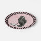 This haunting Vintage Halloween Paper Plate features a victorian pink damask design with a raven in the center with black and pink stripes around the edge.