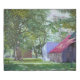Scenic view of vintage barn with colorful foliage and bright strips of light streaking across the large shadow areas. Illustration from and original impressionistic oil painting by fine art painter Daniel Fishback.