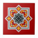 Decorate your home with this ceramic tile with a traditional Barcelona tile design. The background is a deep red.