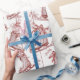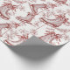 A nostalgic red Christmas gift wrap in vintage toile style, featuring lace up ice skates tied with ribbon and little pine sprigs in delicate line art. Classic and wintry on crisp white, it feels right for holiday gifting and carries beautifully into January birthdays. Pair with velvet ribbon or simple twine for a timeless finish.