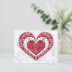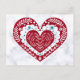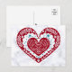 Vintage Red Floral Heart Love Postcard. A beautiful Scandinavian floral design heart on a white marble pattern background.