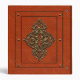 Vintage red leather binder design, with bronze floral ornaments.