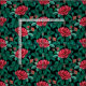 Vintage watercolor drawing red roses pattern with emerald leaves on a black background.