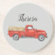 You'll love this simple personalized vintage red truck coaster with a gray background. Customized with your name in pretty typography.