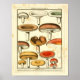 Vintage French botanical illustration of mushrooms. Red, green, brown and yellow. Agaricus pectinaceus.