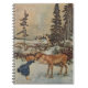 Vintage Reindeer Girl Winter Snow Scene Poster Notebook