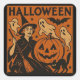 Vintage/retro cat, ghost, pumpkin & witch square sticker