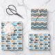 A pattern of fish in retro colors with a coordinating sheet of zig zag lines. Great for boy birthday gifts or even for Father's Day.