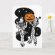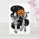 Vintage retro Halloween pumpkin greeting card with costumed women..