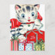Cute vintage black and white kitten is delighted about all his Christmas presents!