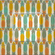 This pattern features simple illustrations of longboards with a vintage look in olive green, teal blue, sage green, mustard gold and orange set against a cream colored background. These longer style of skateboards have retro style in warm-toned colors.