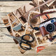 A vintage camera on a background of retro photos - perfect for a special gift, or to use in your next junk journal or craft project.