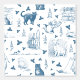 Vintage Retro Toile Pattern Cat Catnip White Blue Wallpaper