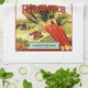 Vintage rhubarb advertising label on a simple cotton kitchen towel. Sweet.