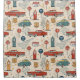 Rustic travel-inspired pattern shower curtain featuring old-style cars, vintage road signs, leaves, and retro adventure elements in a charming countryside style. Ideal for road trip lovers, vintage enthusiasts, travelers, and anyone who loves nostalgic travel aesthetics.