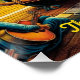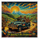 Capture the spirit of the open road with this vibrant 20x20 inch poster featuring a vintage truck cruising through a surreal mountain landscape under a radiant sun. Inspired by the freedom, rhythm, and soul of classic road-trip culture, this artwork blends psychedelic color, musical energy, and nostalgic Americana into one striking piece.