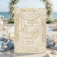 This sophisticated design features a symmetrical rococo scrollwork frame surrounding a subtle diamond lattice background in warm champagne and ivory cream tones. The layout is anchored by delicate rose floral clusters in the corners and a printed fabric drapery effect at the top, creating a sense of theatrical grandeur.This is a flat, professionally printed image featuring a faux gold foil and printed embossed-style ornamental texture; it does not contain actual raised metal or fabric layers.