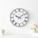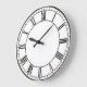 Clock with a plain white background and classic black roman numeral numbers around the dial.