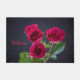 Greet your visitors with this custom doormat featuring a close-up image of miniature red roses against a darkened background. "Welcome" is added in large, easy-to-read, red lettering to match the flowers. The mat measures 24" x 36", and has a smooth felt front & nonslip latex back. It also has a reinforced edge to resist fraying and is both fade & mildew resistant. Ideal for covered entryways such as porches, apartments, offices, condos, etc. Feel free to contact me through Zazzle if you have questions about this mat or would like help transferring this design to a different item. I'm happy to help to ensure the design fits correctly.