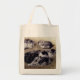 The printing came out very well, better than I had anticipated. The natural color fabric is sturdy with strong seams and comfortable handles. This tote fits easily over my shoulder. As it is filled, the bottom flattens out--very cool! I would buy this product again. This grocery tote holds a lot of groceries! The image quality was very good. The colors were a little darker than I had expected. The darkness may have been due to printing on a natural color fabric rather than on white. The cat design is attractively centered on the tote. The spirit of the design is very lively, just as it appears on the Zazzle website.