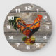 Vintage Rooster on Old Wooden Boards Kitchen clock.