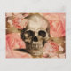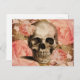 This sweetly dark design features a collage of vintage art including an anatomical drawing of a skull and a botanical illustration of pink roses.
