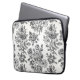 The sleeve is made of nice feeling material and seems very durable. I'm not sure how easy it'll be to clean, but the construction seems sound and the fabric is quick thick. I also like the double zipper. The printing is lovely and appears durable. The white on black contrast is nice, and the design very elegant.