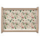 Serve with timeless charm using this beautiful wooden serving tray featuring a delicate vintage floral pattern of pink roses, white daisies, green leaves, and tiny insects on a soft cream background. Perfect for breakfast in bed, afternoon tea, charcuterie boards, or as a decorative accent for cottagecore, farmhouse, or romantic home decor. Sturdy natural wood frame with easy-grip handles and wipe-clean surface. The ideal gift for weddings, bridal showers, or anyone who loves classic botanical elegance.